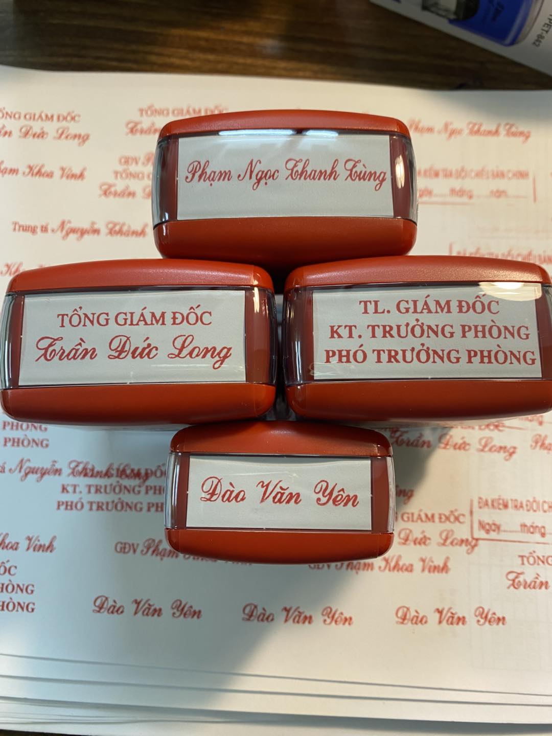 Nhận khắc dấu tròn công ty, dấu vuông – chữ nhật, dấu tên, dấu chức danh, dấu ngày tháng, dấu logo và dấu thiết kế theo yêu cầu.