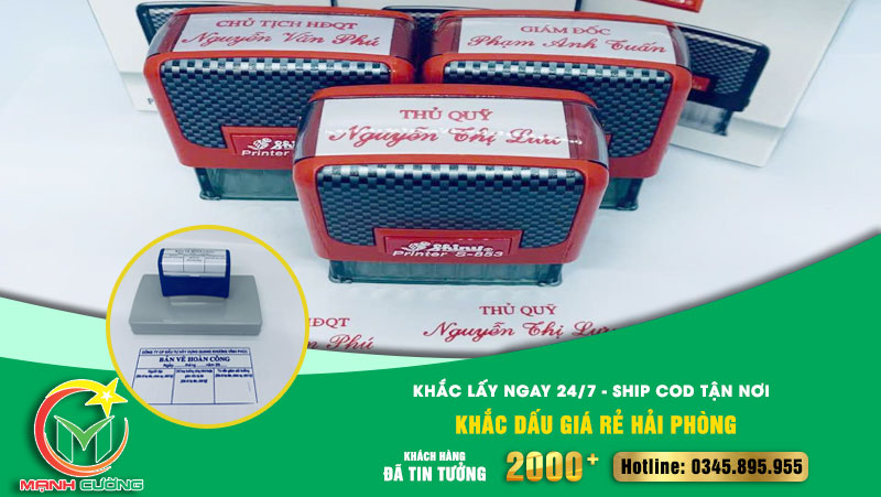 Bạn đang cần khắc dấu giá rẻ tại Hải Phòng nhưng lại lo lắng về thời gian và tiện ích giao nhận? Dịch vụ khắc dấu giá rẻ Hải Phòng: Khắc lấy ngay 24/7 – Ship COD tận nơi chính là giải pháp hoàn hảo cho mọi cá nhân, doanh nghiệp. Cùng tìm hiểu về dịch vụ này qua nội dung bài viết dưới đây và nhanh chóng liên hệ ngay với Quảng Cáo Và Khắc Dấu Mạnh Cường để được tư vấn, hỗ trợ sử dụng dịch vụ chuyên nghiệp nhất không chỉ giúp tiết kiệm thời gian, chi phí, mà còn đảm bảo tiện lợi, nhanh chóng và an toàn.