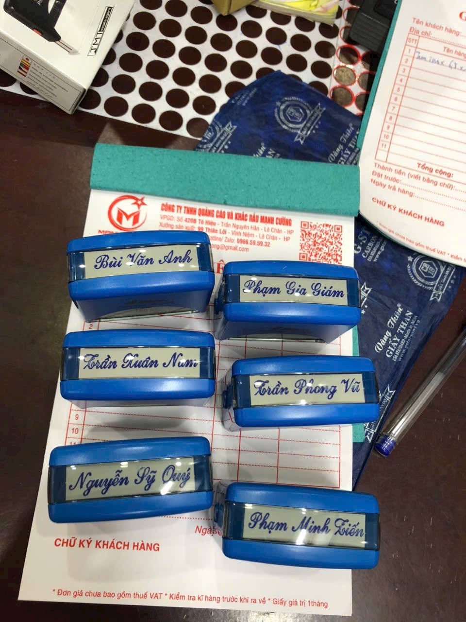Không chỉ chú trọng về chất lượng, Quảng Cáo Và Khắc Dấu Mạnh Cường còn luôn đặt lợi ích và trải nghiệm của khách hàng lên hàng đầu, từ việc tư vấn lựa chọn loại dấu phù hợp, đến hướng dẫn sử dụng và bảo quản con dấu đúng cách. Sự kết hợp giữa kinh nghiệm lâu năm, công nghệ hiện đại và dịch vụ chuyên nghiệp giúp Quảng Cáo Và Khắc Dấu Mạnh Cường trở thành lựa chọn hàng đầu cho các doanh nghiệp và cá nhân tại Hải Phòng, đảm bảo mỗi con dấu khi ra đời đều đúng chuẩn pháp lý, bền đẹp và thể hiện sự uy tín, chuyên nghiệp của khách hàng.